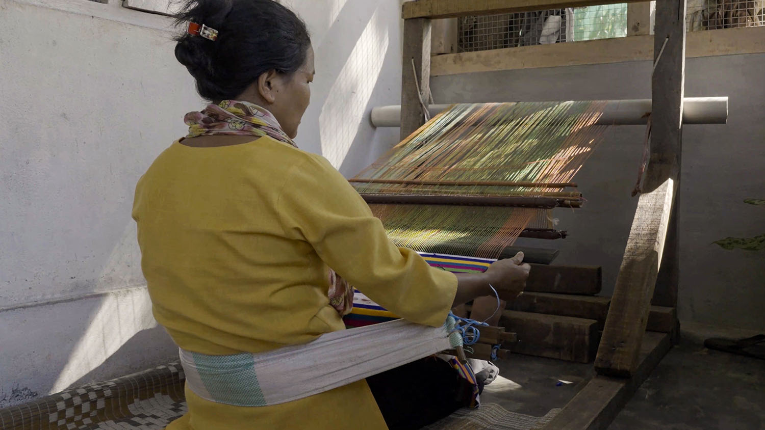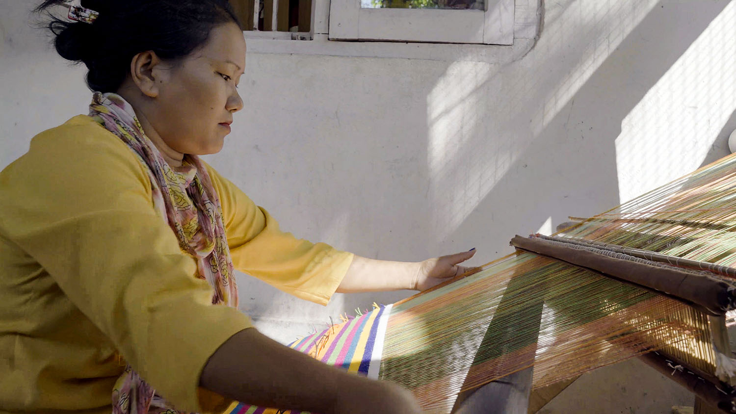 Akum Tayeng Seated at a Backstrap Loom in Her Home; Pragadeesh Marimuthu, Rani, East Siang District, Arunachal Pradesh; c. 2021; MAP Academy