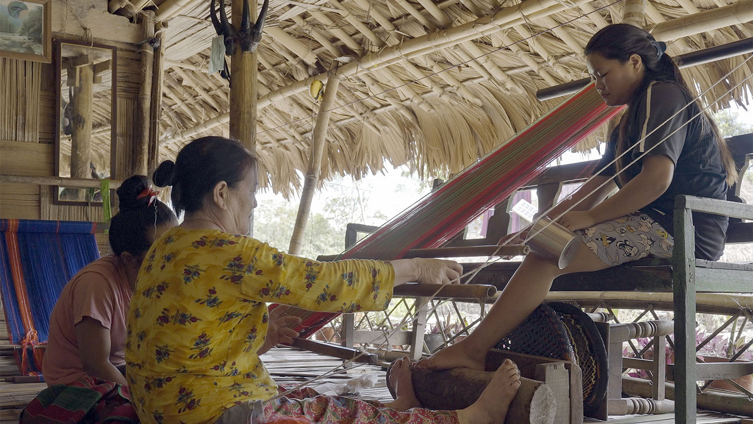 Sadin Pangking and Akum Tayeng Prepare the Warp on a Backstrap Loom; Pragadeesh Marimuthu, Rani, East Siang District, Arunachal Pradesh; c. 2021; MAP Academy