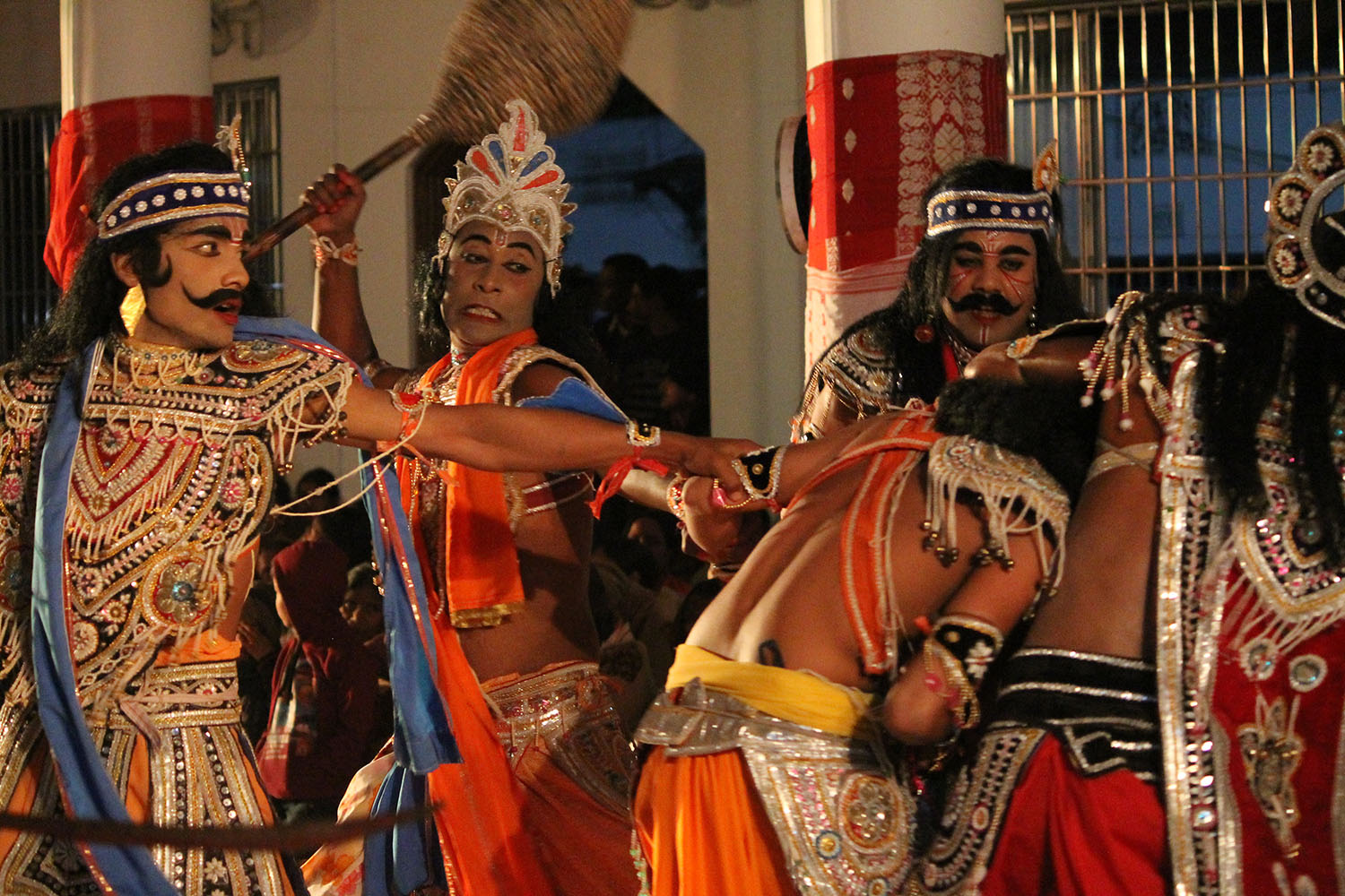 By the late nineteenth century, bhaona began to be used in more secular contexts, with performances held for Queen Victoria’s Golden Jubilee in 1887. Characters such as the bahua (clown) and dut (messenger) were added to the plays, and verses became simpler. Musical instruments such as the mridangam also began to be used.