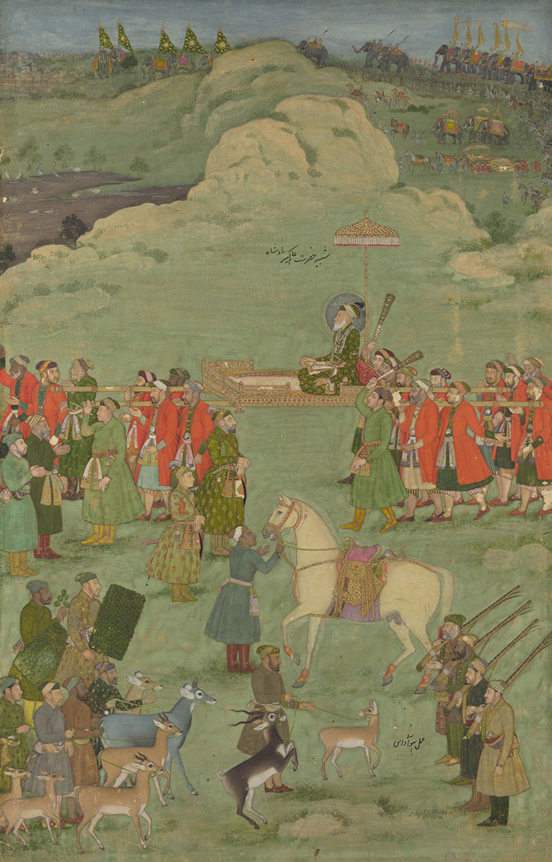 Bhavanidas spent a majority of the first two decades of the eighteenth century at the Mughal imperial workshop. Here, he is known to have painted generational portraits of the Mughal emperors, including a painting of Shah Jahan with his grandsons and one of Timur with his descendants. Another work attributed to Bhavanidas, less formal in its composition, depicts a hunting party led by the then emperor Aurangzeb. However, Aurangzeb’s reign was also marked by a decline in the number of workshops and a reduction in the patronage and training of artists.