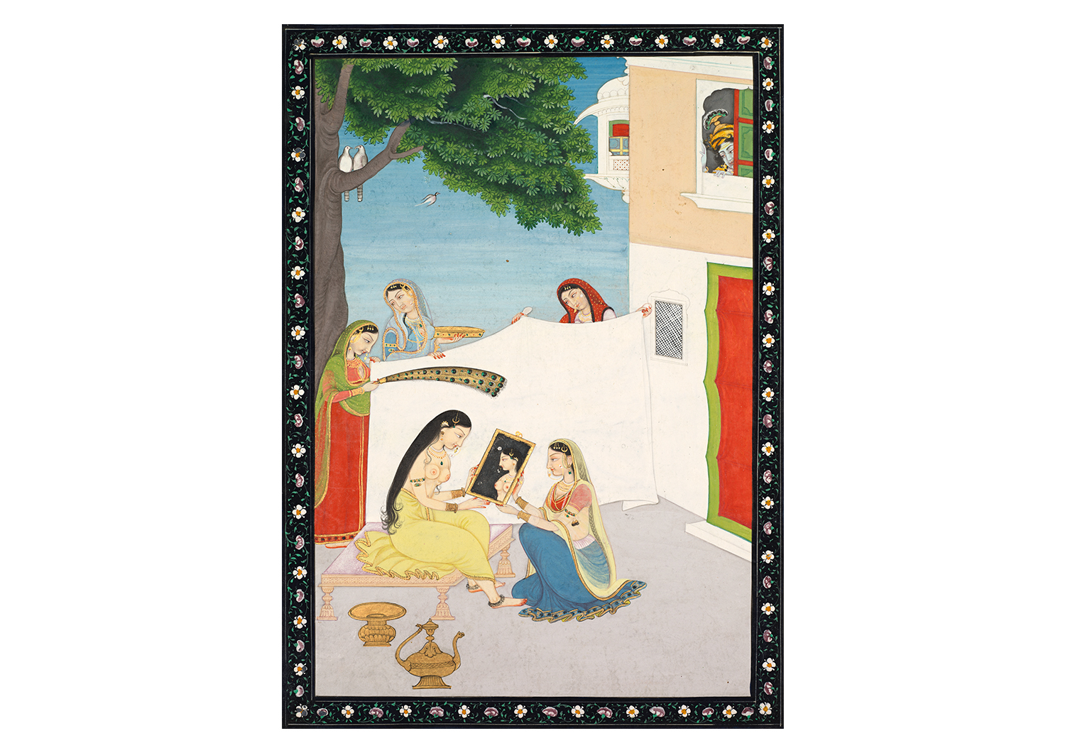Chowries, chamaras and morchals frequently appear in Indian art as symbols of royalty or divinity. In the tenth-century Sanskrit collection of folk tales and legends Kathasaritsagara by Somadeva, the king Naravahanadatta is born with birthmarks resembling chowries and parasols on his feet — both auspicious omens signalling his future as a great king. Miniature paintings from Mughal and Rajput courts depict fly-whisk bearers or chamaradars alongside royal figures. Some scholars have suggested that the fly-whisk was just as symbolic of royal power as the parasol, the crown or the throne, and could represent the ruler’s presence and authority even when he was absent. Some scholars argue that by extension, chowrie-bearers — such as the second-century Didarganj Yakshi — themselves occupy a place of importance as divine guardians of creation, rather than being simply subservient figures.