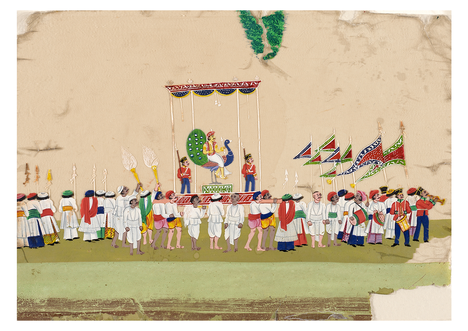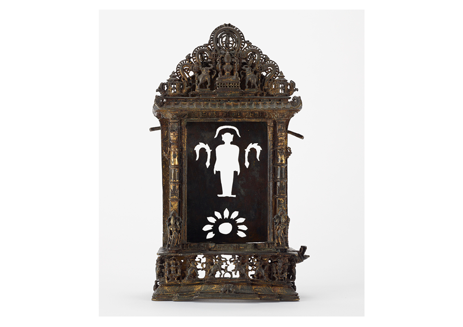 The morchal derives its name from the Prakrit mora, meaning peacock, and draws special symbolic significance from the peacock feathers forming its whisk. Figuring prominently in Vaishnava and Shaiva imagery, the peacock feather appears across varied traditions of the subcontinent, from folklore to Sanskrit literature, as an especially healing or purifying object or symbol.