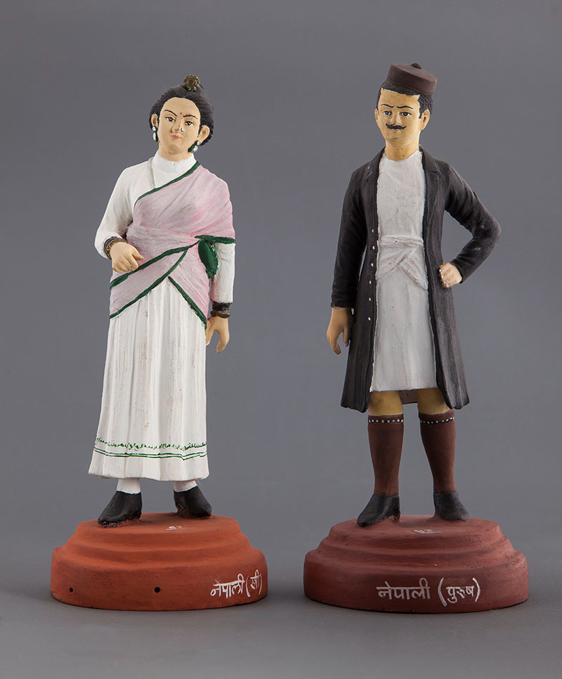Since the late nineteenth century, the chaubandi and daura have effectively formed part of Nepal’s national dress, and officially so from 1961 to 2011. In 1961, the monarchy imposed a political system known as Panchayati Raj under the slogan Ek Raja, Ek Bhesh, Ek Bhasha (‘One King, One Dress, One Language’) — which sought to establish a uniform Nepali culture based on the norms and practices of upper-caste Hindus. The policies included nationalising the Nepali language (which derives mainly from the Khas language), and making the daura-suruwal and gunyo-cholo the mandatory dress code for state ceremonies and state officials. Although Nepal became a constitutional monarchy in 1990 following the People’s Movement, this dress code remained in place until 2011, when it was abolished by an elected government in a move to reduce the influence of upper caste practices on Nepali culture. While no longer required by law, government employees continue to wear the chaubandi and daura because of the garments’ association with nationalism and tradition.