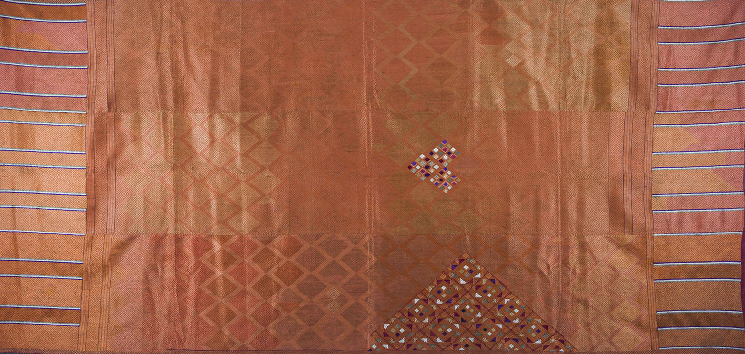 A type of bagh characterised by a large, decorated triangle along its longer sides, ghunghat baghs are worn by brides as a ghunghat or veil during wedding ceremonies. The bagh is worn in such a way that a triangle falls over the bride’s face. A variation of the ghunghat bagh is the sar pallu, which has large, elaborately decorated borders on the short sides of the garment.