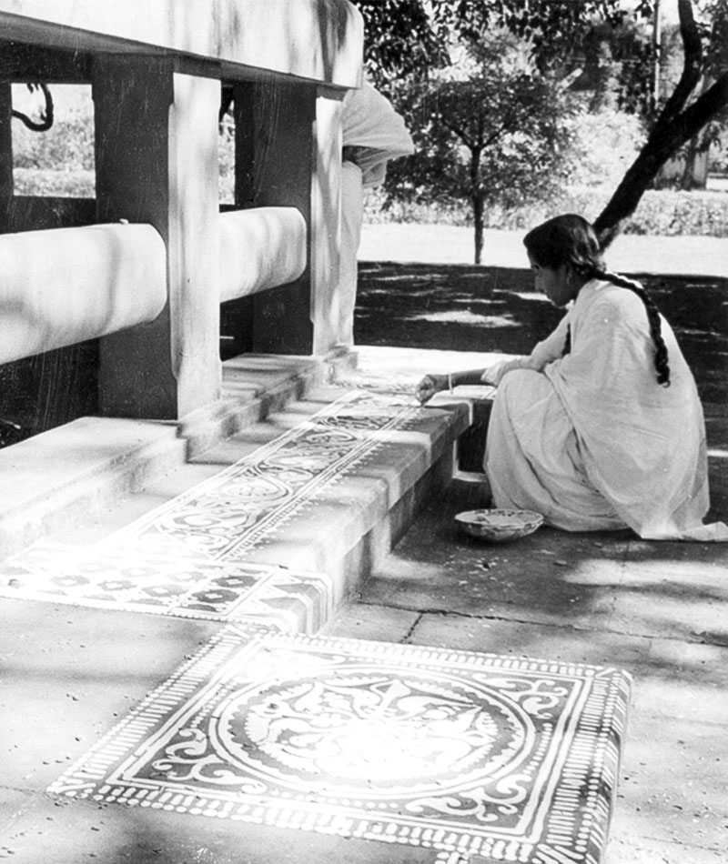 In 1921, Tagore invited the Austrian art historian Stella Kramrisch to give a series of lectures on Indian art history and Western styles. He made attendance to her lectures compulsory, often also being present in the capacity of interpreter. Kala Bhavana’s initial pedagogical methods were also greatly influenced by the teaching methods and practices of its first principal Nandalal Bose, as well as Benode Behari Mukherjee and Ramkinkar Baij