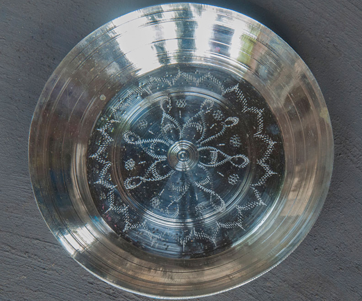 Kitchenware made by the Kansari artisans includes trays and plates (thali and thalia), bowls (bela), water pots (lota and gara), cups and glasses (qina and gilasa) and ladles. Ceremonial items made for the home and temples include lamps (dibi and rukha), incense stands (dhupadani), seats for idols (khatuli) and small and big cymbals (ginni and tale). Despite the cultural prestige associated with them, the demand for these articles has been steadily declining with the mass production and easy availability of aluminium, steel and plastic goods. Coupled with a lack of appropriate marketing and obsolete production technologies, this has posed a threat to the craft’s sustainability. While many Kansari artisans have diversified into making decorative items, curios and jewellery, others have sought alternative employment.