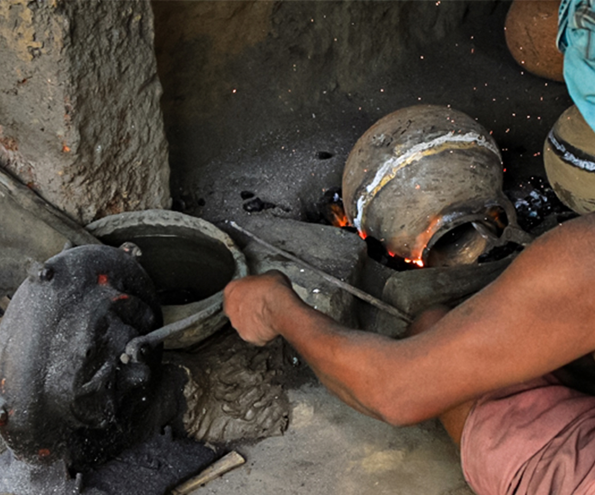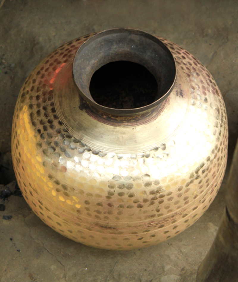 Such a forging process renders these utensils virtually unbreakable, vulnerable only at the joints where components are welded together — however, such joints are kept to a minimum. Most brass and bell metal utensils comprise a single component with no ancillary parts such as handles. A layer of coal is often applied onto the outside of cooking utensils for greater heat conduction, while utensils for eating, drinking and other purposes are polished to a shine. Each master artisan typically specialises in making a particular product, and working specifically with either brass or bell metal; to an extent, each district is also known for a unique range of products. Within a village or craft cluster, however, Kansari artisans share communal resources such as workshops and furnaces.