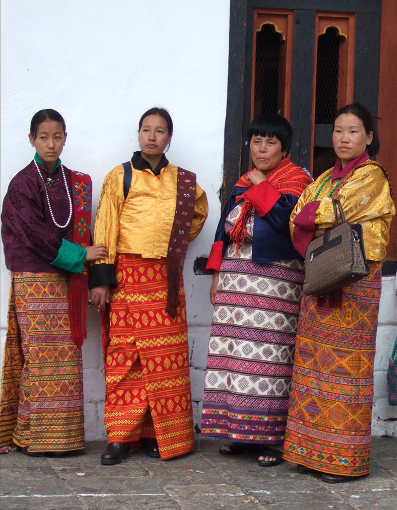 After the Wangchuck dynasty rose to power in 1907, the women of the family influenced nationwide trends by appearing in kiras of the ornately brocaded silk kushuthara textile woven in their native Kurtoe. However, Bhutan’s steady modernisation and opening up during the twentieth century also led to the increasing influence of Western dressing styles in the country. This prompted the government, in 1989, to make the gho and kira mandatory, for men and women respectively — to be worn in schools, colleges, workplaces and public spaces, with specific stipulations. Whilst rules for the gho are rigid, the kira offers greater scope for individual preferences in the fabric, colours and patterns, and to some extent, length.