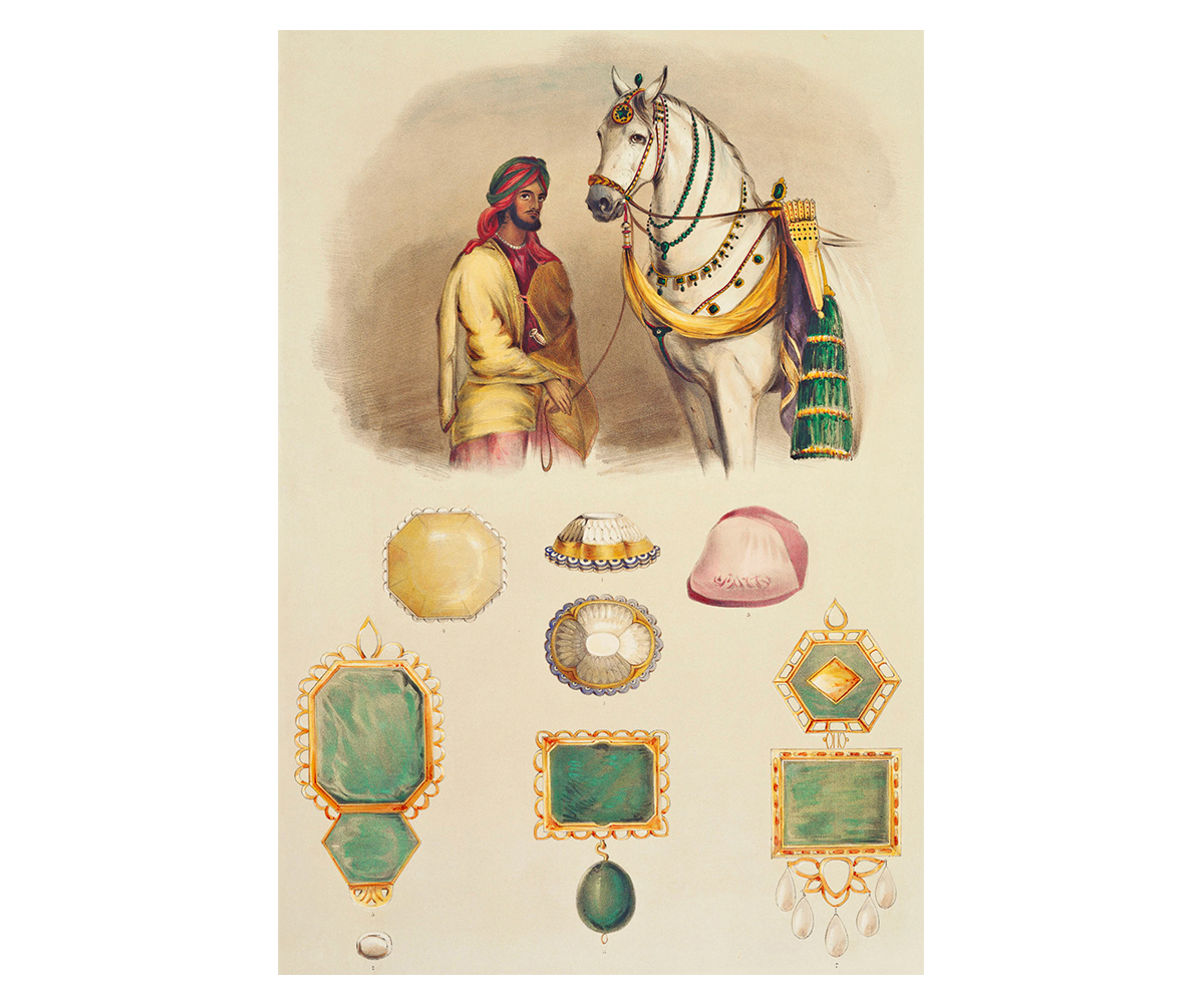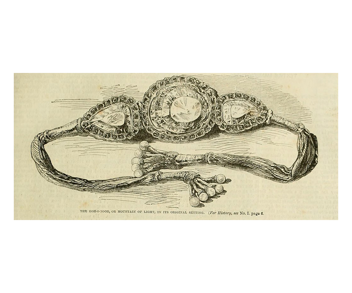 A large diamond with a long history, the Koh-i-Noor is famously associated with conquests and the shifting balance of power among rival empires between the thirteenth and nineteenth centuries. Said to have been named Koh-i-noor — meaning ‘mountain of light’ in Persian — by Iranian conqueror Nader Shah, the diamond has changed hands many times, usually as a spoil of war. Its owners include the Kakatiya dynasty of South India, the Delhi Sultanate, the Mughals, the Afsharids of present-day Iran, the Durranis of present-day Afghanistan, and maharajas of the Sikh empire, before the British East India Company acquired it. Housed in Britain since 1849 as Crown property, today it is the subject of criticism, international tensions and debates surrounding the colonial appropriation of goods.