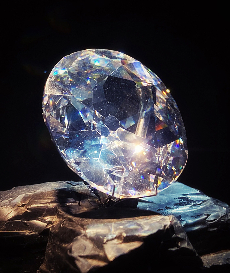 In 1851, the diamond was displayed at the Great Exhibition in London, where it failed to make a positive impression on the public owing to its dull appearance, which was exacerbated by a poor display case. This led the Queen’s consort Prince Edward to have it re-cut to improve its refraction, by Levie Benjamin Voorzanger and his team from the Dutch polishing house Royal Coster. The cutting, which took over a month, was undertaken in 1852 at the premises of the Garrard jewellery house in London, and used a steam-powered mill specially built for the purpose. The previously rose-cut diamond with 169 facets, which had a flat base and high dome, typical in the stones favoured by the Mughals, was shaped in the oval-brilliant cut, with sixty-six facets. Several of its imperfections were identified and removed, reducing its weight by nearly half but vastly improving its refractive ability and brilliance.