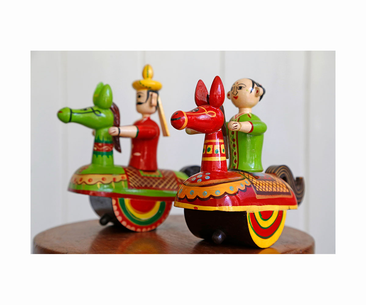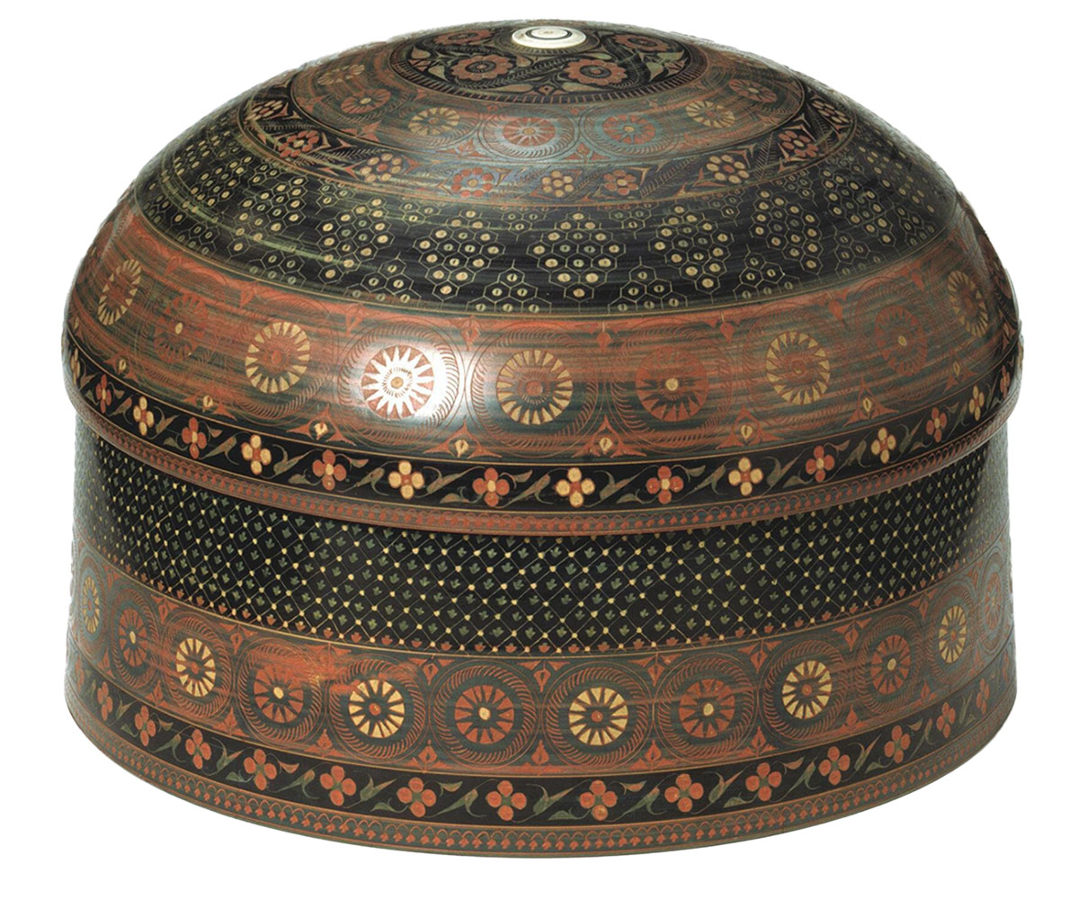 Made from a resinous substance extracted from the lacca insect, lac ware generally refers to objects made entirely or partially from lac. The word “lac” derives from the Sanskrit laksha, meaning 100,000, referring to the large number of insects typically needed for making the resin, the red and purple lac dye, and other byproducts. Lac was known in the subcontinent from at least the first millennium BCE. It is mentioned in three texts from the period: the Atharvaveda, the Astadhyayi of Panini, and the Mahabharata, where the Pandavas are almost killed in a flammable building made of lac and ghee. Most common across the states of Rajasthan, Punjab, Gujarat and Odisha amongst others, lac is used to produce a variety of objects from jewellery to furniture. Mediaeval Indian lac work was heavily influenced by Persian lac ware brought through Punjab, and this finer form of the craft was mentioned in the Ain-i-Akbari of Abu’l Fazl in 1590. Lac art was introduced to Rajasthan in the eighteenth century and was patronised by Maharaja Ram Singh of Jaipur.