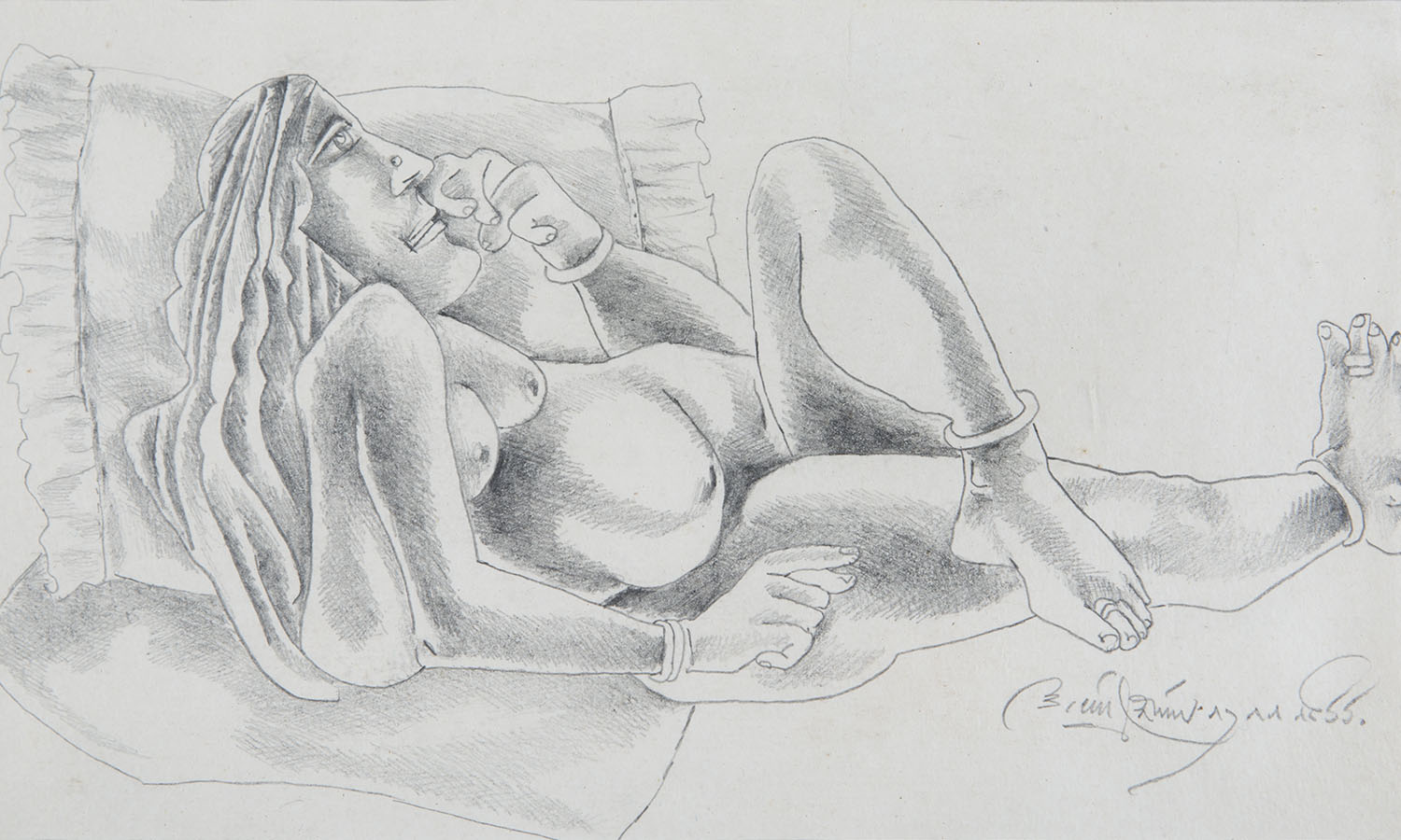 Reclining Girl; Laxma Goud; c. 1988; Graphite on paper; 12 x 21 cm; Museum of Art & Photography (MAP), Bengaluru