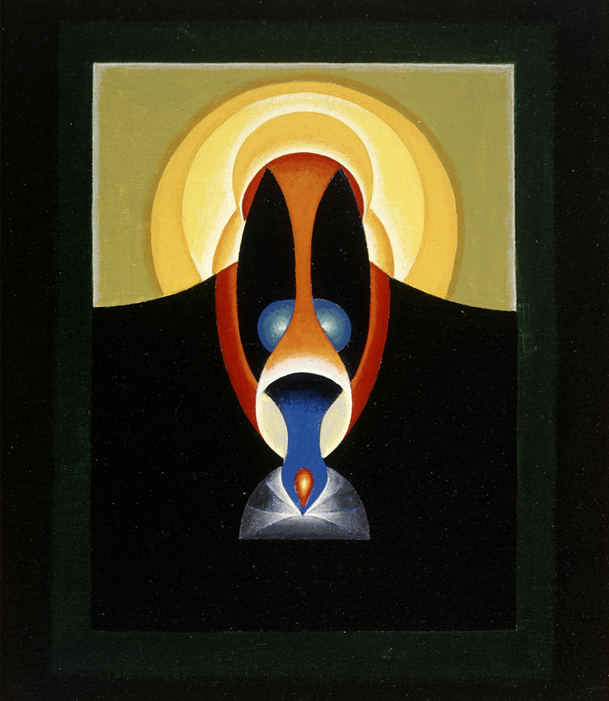 Untitled, painting based on Tantric ideas and made up of a central oval element possibly a Lingam; Santosh; Delhi, India; 1974; Acrylic on canvas; 46 x 35.6 cm; The Trustees of the British Museum