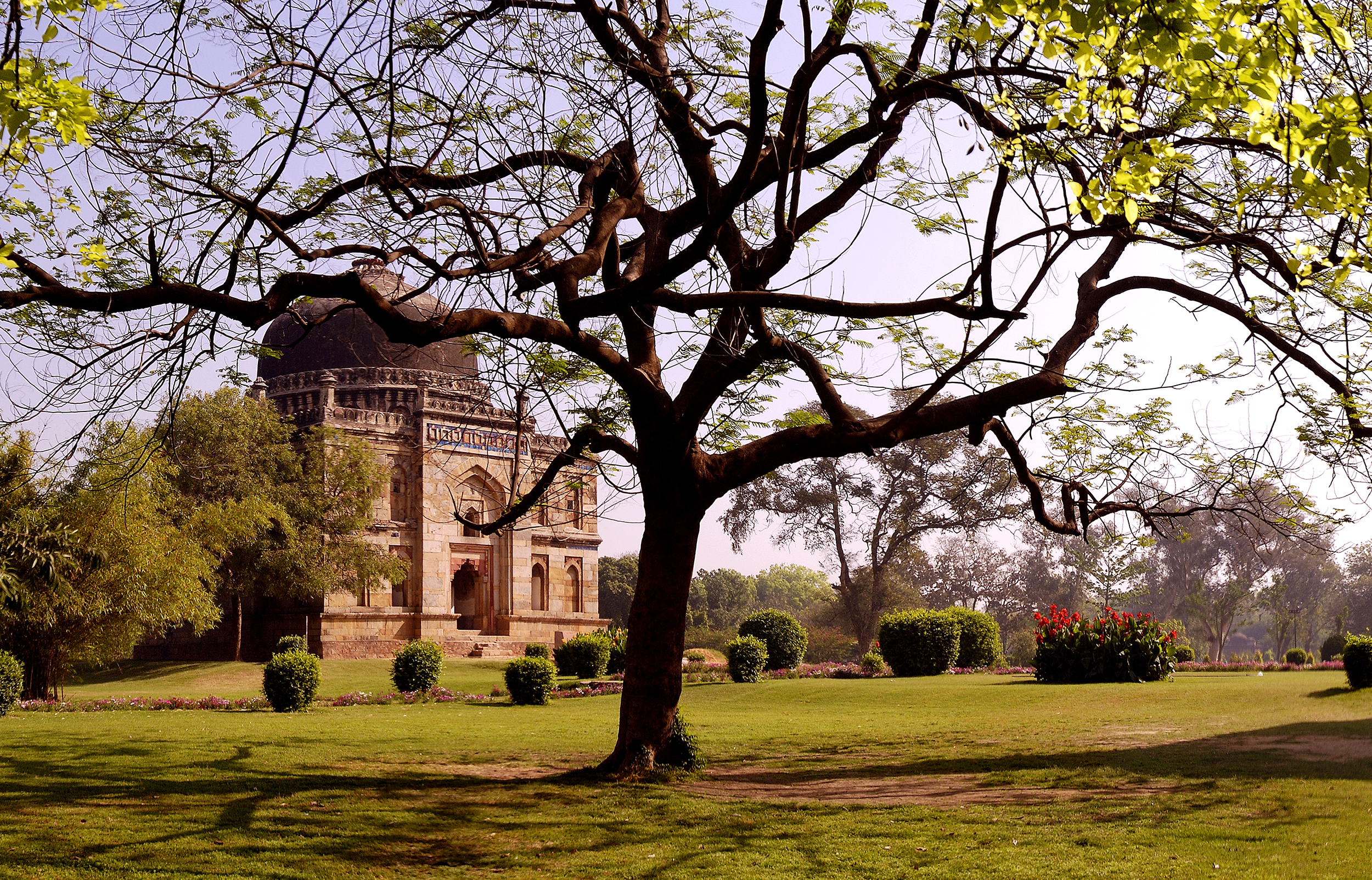 Prior to the urban redesigning of Delhi by the British in the early twentieth century, these structures lay in an area that was part of a village on the banks of the river Yamuna called Khairpur. In 1936, following the formation of New Delhi as an extension of the city, the residents of Khairpur were evacuated and the region was integrated as Lady Willingdon Park, named after the wife of the then-Viceroy of India, Freeman Freeman-Thomas, the Marquess of Willingdon. The tombs were consolidated as a single complex and a large number of native and foreign trees were planted around the monuments while pathways were constructed, giving the place the shape of a park. Following the independence of India, it was named as Lodi Gardens. In 1968, American modernist architect, Joseph Allen Stein, re-landscaped the complex, adding an artificial lake with a fountain and a glass house for storing plants. Stein’s remodelling gives the complex its present day shape. The garden of the Mughal-era mosque now serves as the Rose Garden which houses a variety of English roses. In 1996, the India Bonsai Association helped in setting up the National Bonsai Park next to Gate No.1 of Lodi Gardens — a paved section dedicated to the display of a large variety of bonsai trees. In 2010, all of the complex’s monuments were restored by the Indian National Trust for Art and Cultural Heritage (INTACH).
