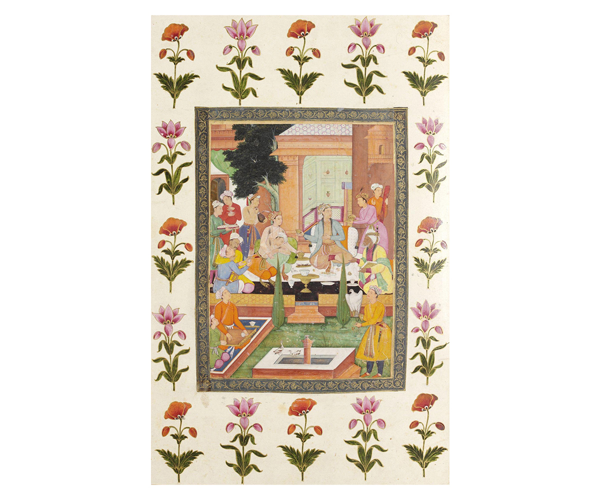 Painting of a princely gathering at a mehfil; Mughal, India; 1615–1620; Opaque watercolour and gold on paper; 35.5 x 23.5 cm; Victoria and Albert Museum, United Kingdom