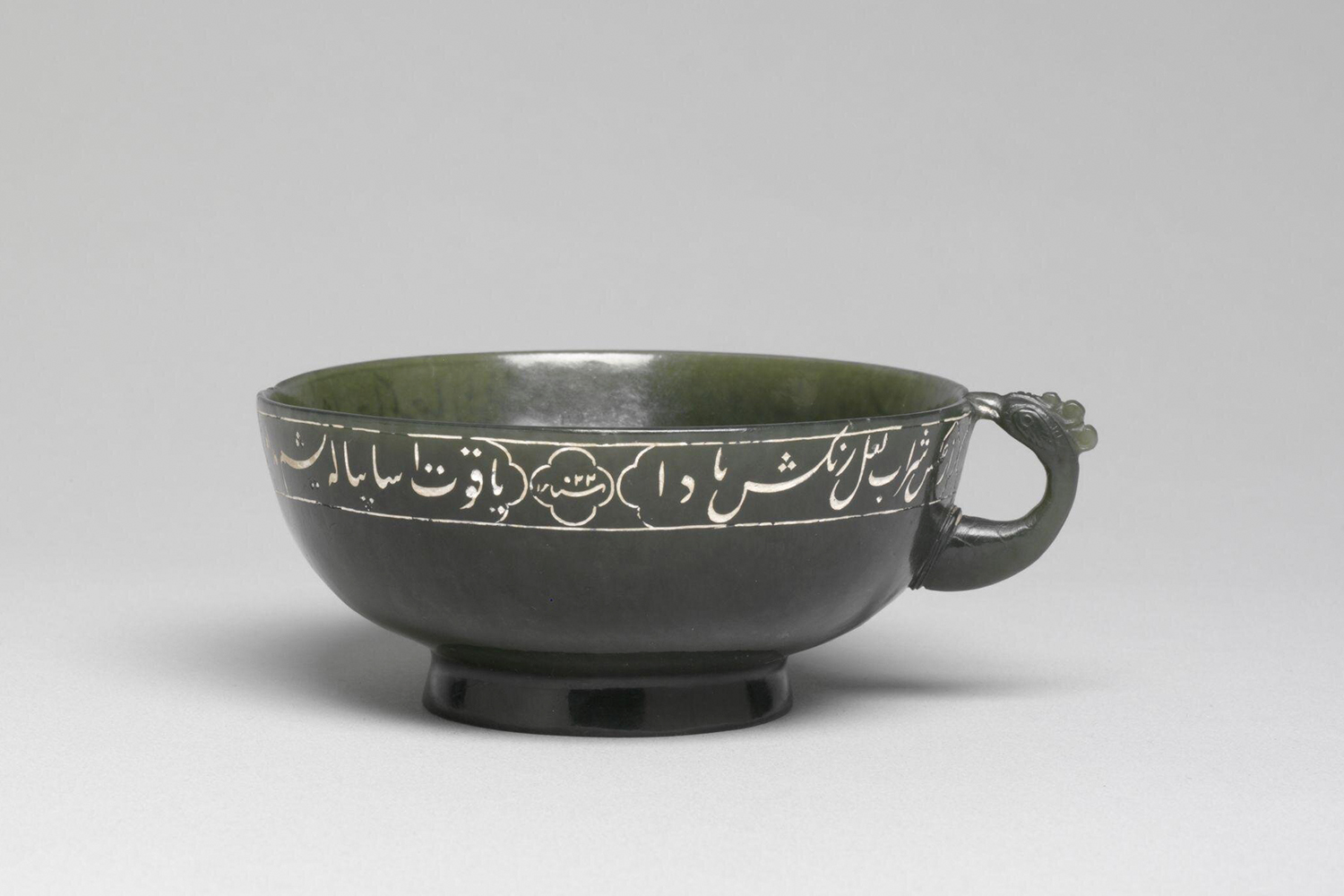 Jahangir's jade wine cup; Sa'ida Ye-Gilani, Mughal; 1613; Nephrite jade; 3.8 x 8.8 cm; Victoria & Albert Museum, United Kingdom