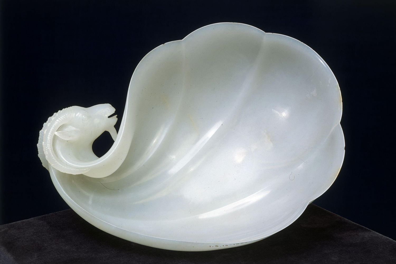 Shah Jahan's wine cup, reverse; Mughal, India; 1657; White nephrite jade; 18.7 x 14 cm; Victoria & Albert Museum, United Kingdom