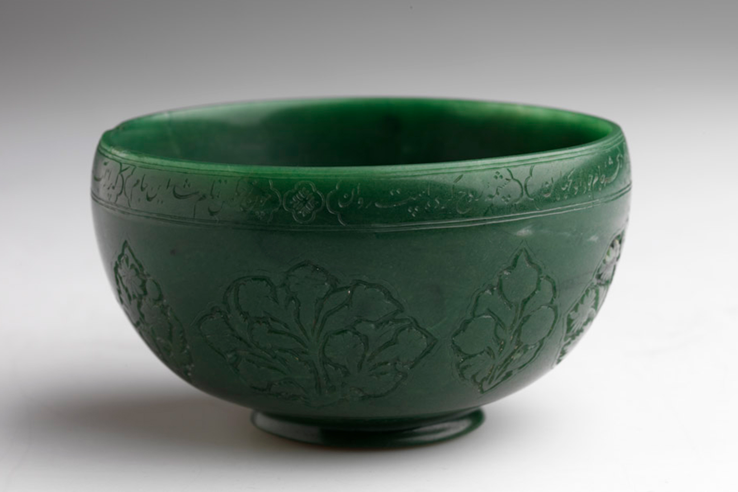Jahangir's wine cup; Mughal, India; 1612-1613; Quartz and chromium muscovite; Rhode Island School of Design Museum, New York