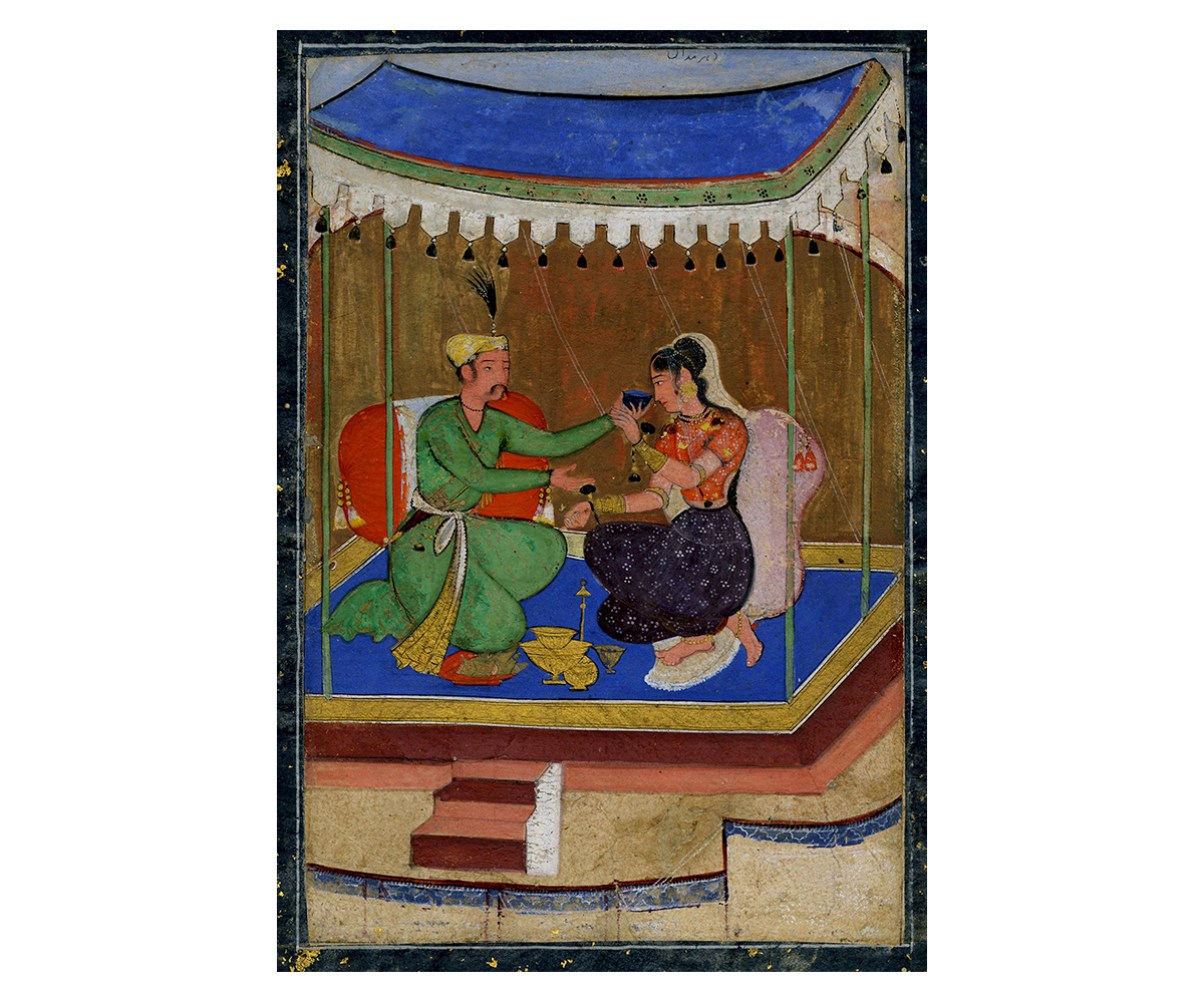 A man and woman drinking under a canopy; Mughal, India; 1610; Opaque watercolour on paper; 26.4 x 20.7 cm; Trustees of the British Museum