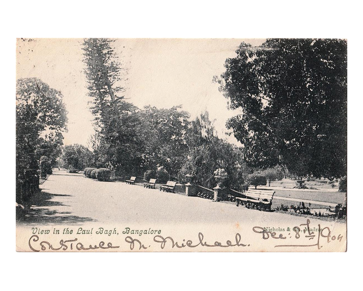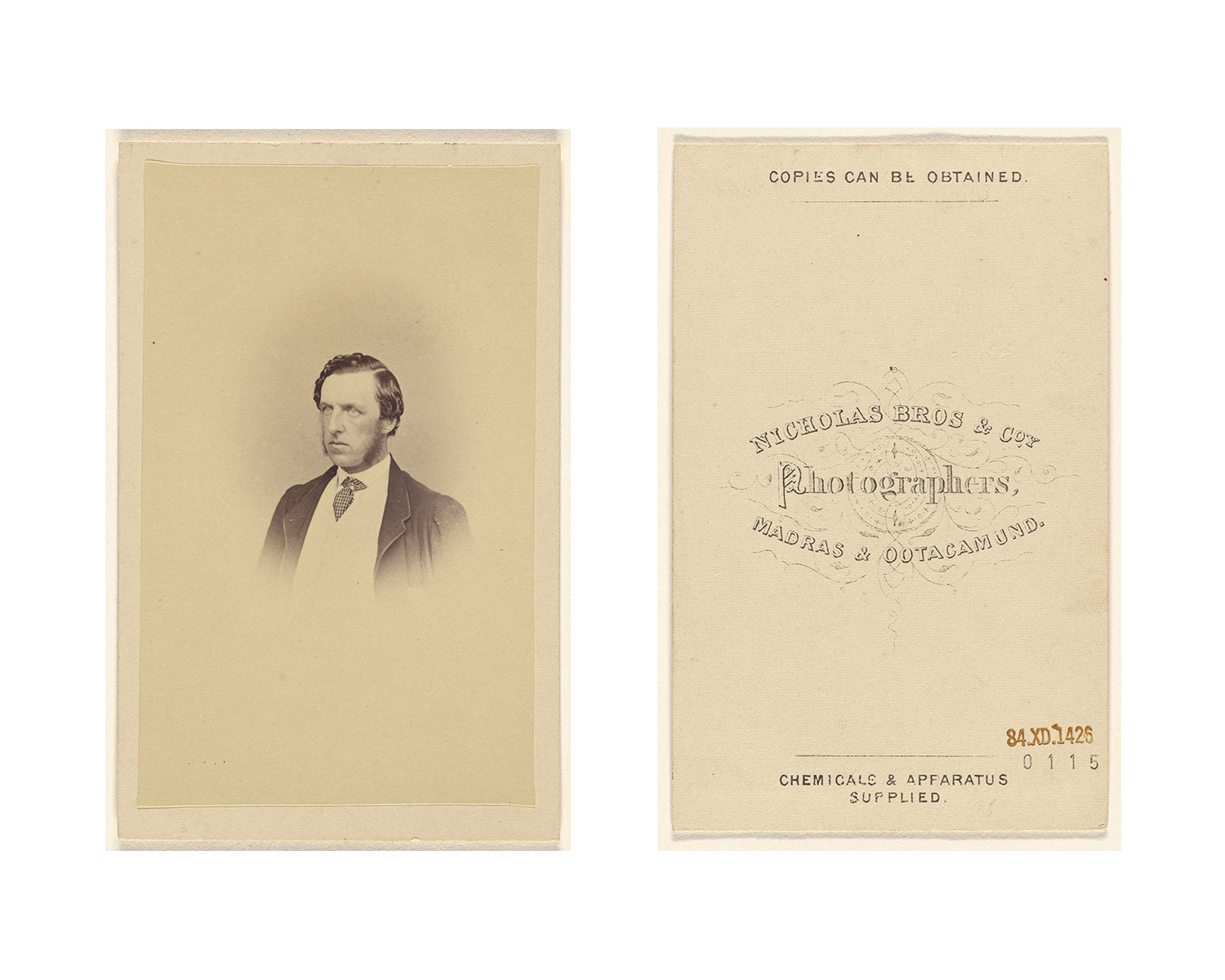 One of the earliest photographic studios in southern India, Nicholas & Co. began in 1857 at Mount Road, Madras (now Chennai). It was founded by the English photographer John P Nicholas, who was soon joined by his brother James; from 1861 they ran the studio together under the name Nicholas Brothers. It underwent several changes of name and ownership, becoming Nicholas & Co. in 1873.