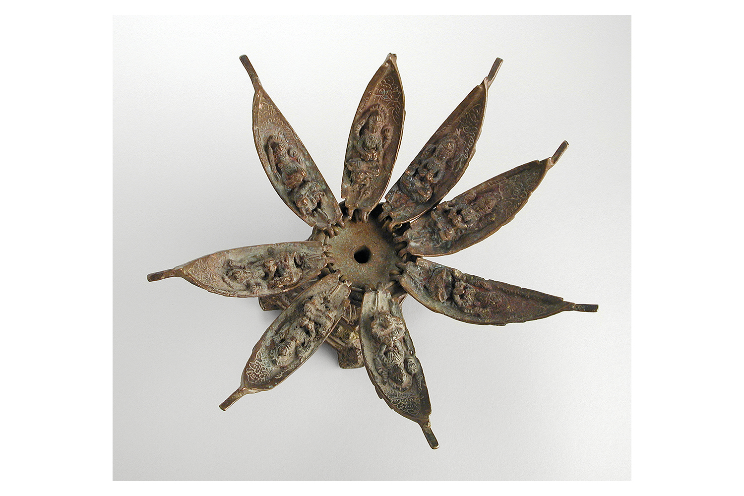 A group of goddesses usually depicted together, the Saptamatrikas, meaning ‘seven mothers’ in Sanskrit, are believed to be emanations of Devi, or the Great Goddess, and symbolise different aspects of the divine feminine energy, or shakti. The goddesses are ascribed a number of qualities, which include protection, destruction, and benevolence.