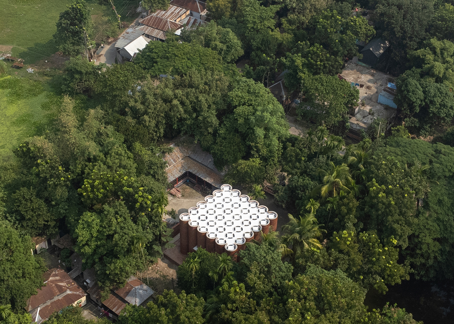 A contemporary mausoleum and community centre in Manikganj, Bangladesh, the Shah Muhammad Mohshin Khan Dargah is dedicated to the twentieth-century Uwaisi pir, or Sufi saint, who was influential in the region. Commissioned by Khan’s son and designed by the Bangladeshi architecture firm Sthapotik in 2022, the building is notable as a modern interpretation of the traditional dargah, or Sufi shrine. Built as an environmentally conscious, relatively small-scale structure, it employs local materials, natural light and ventilation, and incorporates elements from the region’s medieval sultanate architecture. Besides Khan’s own grave, the dargah also houses those of his wife, Begum Noorjahan, and his father, Shah Muhammad Ismail Khan Uwaisi.