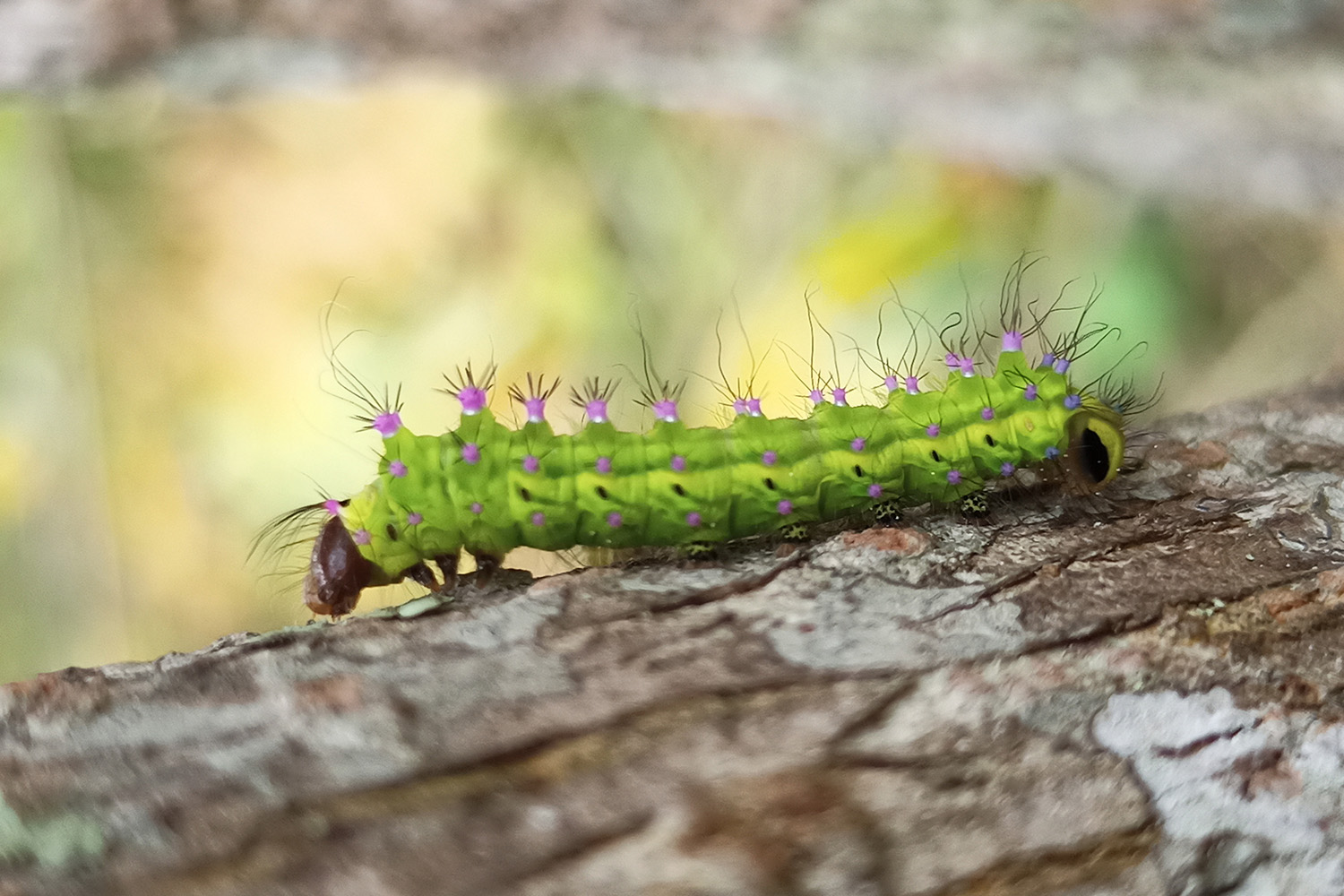 The silkworm is the larval stage in the life cycle of the silk moth, following mating and egg-laying. The larva moults four times before spinning a cocoon around itself using a protein secretion that hardens into silk on contact with air. Except in the case of the eri silkworm, this is a single continuous fibre, which may be over a kilometre long. The cocoon fibre comprises two filaments of the protein fibroin, held together by a smaller amount of viscous protein called sericin. While the fibroin is white, the colour of the sericin varies across silkworm species, imparting different colours to the natural silk fibres. The cocoon offers protection to the larva during its transformation via the pupa and chrysalis stages into an adult, the imago, which finally pierces the cocoon and flies out as a moth. In the bulk of commercial sericulture, the moth stage is not reached as silk is extracted during the cocoon stage, in order to obtain an unbroken length of silk fibre.