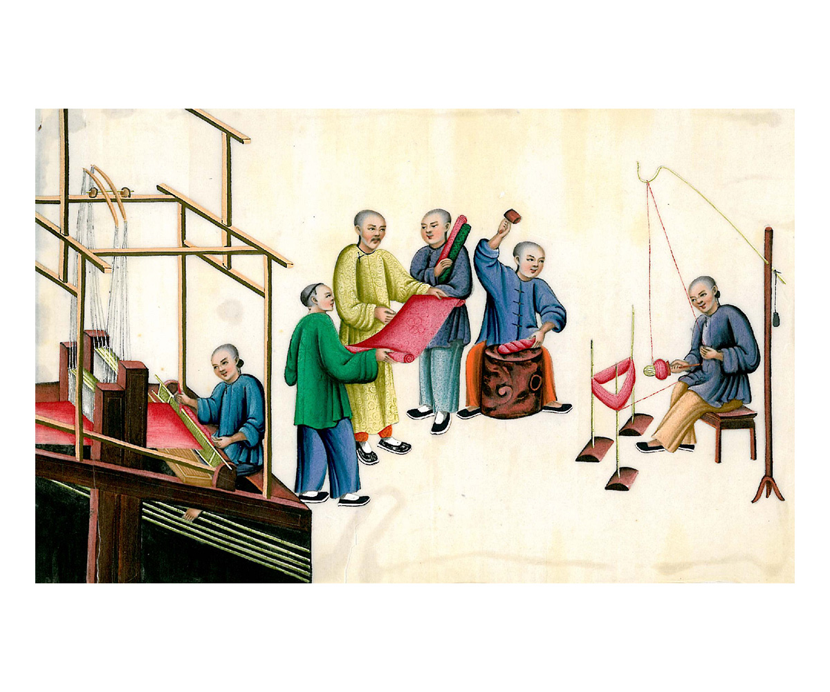 Silk production is known to have started in ancient China by the third millennium BCE, though recent research in neolithic Chinese burial sites has uncovered evidence of silk and basic weaving tools believed to be around 8500 years old. Culturally, the origins of silk have mythic associations. Chinese legend states that empress Leizu, wife of the Yellow Emperor, Huangdi, stumbled on the discovery of silk when she began to unravel a cocoon that had fallen into her teacup. She is said to have taught the art to the people, and is revered as the goddess of sericulture. For centuries, the art of sericulture was kept a closely guarded secret in China as silk remained a highly exclusive commodity, reserved for use in the royal court. It became an important industry during the Han dynasty, and the fabric started to be used as high-value currency within the kingdom, as well as imperial gifts that travelled as far as Egypt and Rome. By the first century BCE, it was a prized luxury good in the Roman empire, and eventually became one of China’s biggest exports, in an East–West transcontinental trade that gave the Silk Road its name.