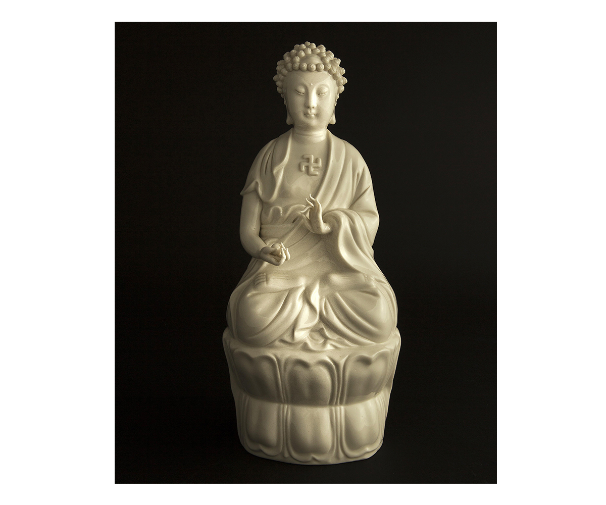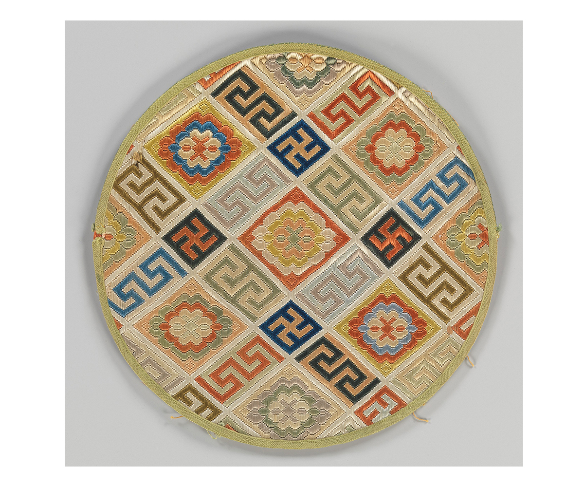 With the spread of Buddhism to East Asia, the swastika was incorporated into Chinese and Japanese iconography, writing and art, becoming identified with the similar Chinese character ‘wan’ and signifying immortality, longevity and good fortune. It is used here singly, in pairs of right- and left-facing swastikas, or repeating in interlocking patterns such as sayagata.