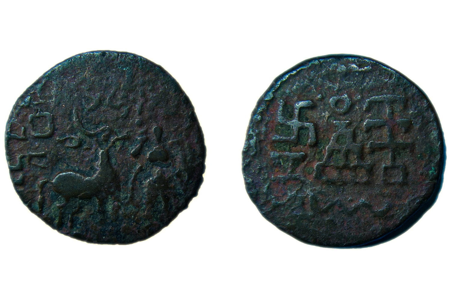 The earliest occurrence of the swastika in the Indian subcontinent dates back to the Indus Valley Civilisation. Seals dated to the third millennium BCE at Harappa and Mohenjo-Daro depict clearly developed swastikas meant to stamp the right-facing variant of the symbol. While the purpose of this early swastika has not been conclusively determined, there is greater clarity on later applications of the symbol in India. In Hinduism, the right-facing swastika represents the Sun (or, loosely, the solar deity Surya), whereas the left-facing version — known as a sauvastika in Sanskrit — represents its counterpart, the night, and by extension, the rituals associated with Kali. In Buddhist iconography, the right-facing swastika represents the cycle of death and rebirth as well as the footprints of the Buddha. In Jainism, the swastika symbolises the seventh Tirthankara and the four realms where a person can be sent through rebirth — the animal kingdom, hell or naraka, human society, and the spirit realm. Hindus and Jains also draw the swastika on objects such as accounting ledgers and doorways to attract good fortune. The swastika is also often drawn as part of rangoli decorations during festivals such as Diwali.