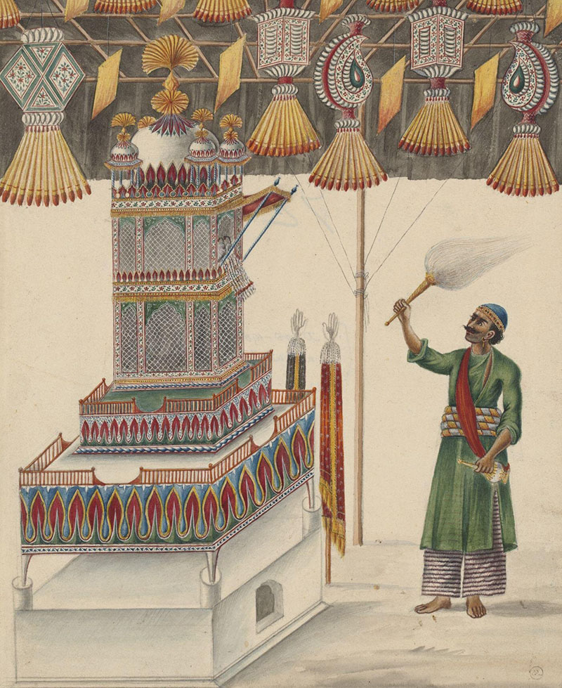 Hasan, Aoun. “History of Taziya in India: The Symbol of Muharram Mourning.” Sahapedia, October 09, 2020. https://www.sahapedia.org/history-taziya-india-symbol-muharram-mourning