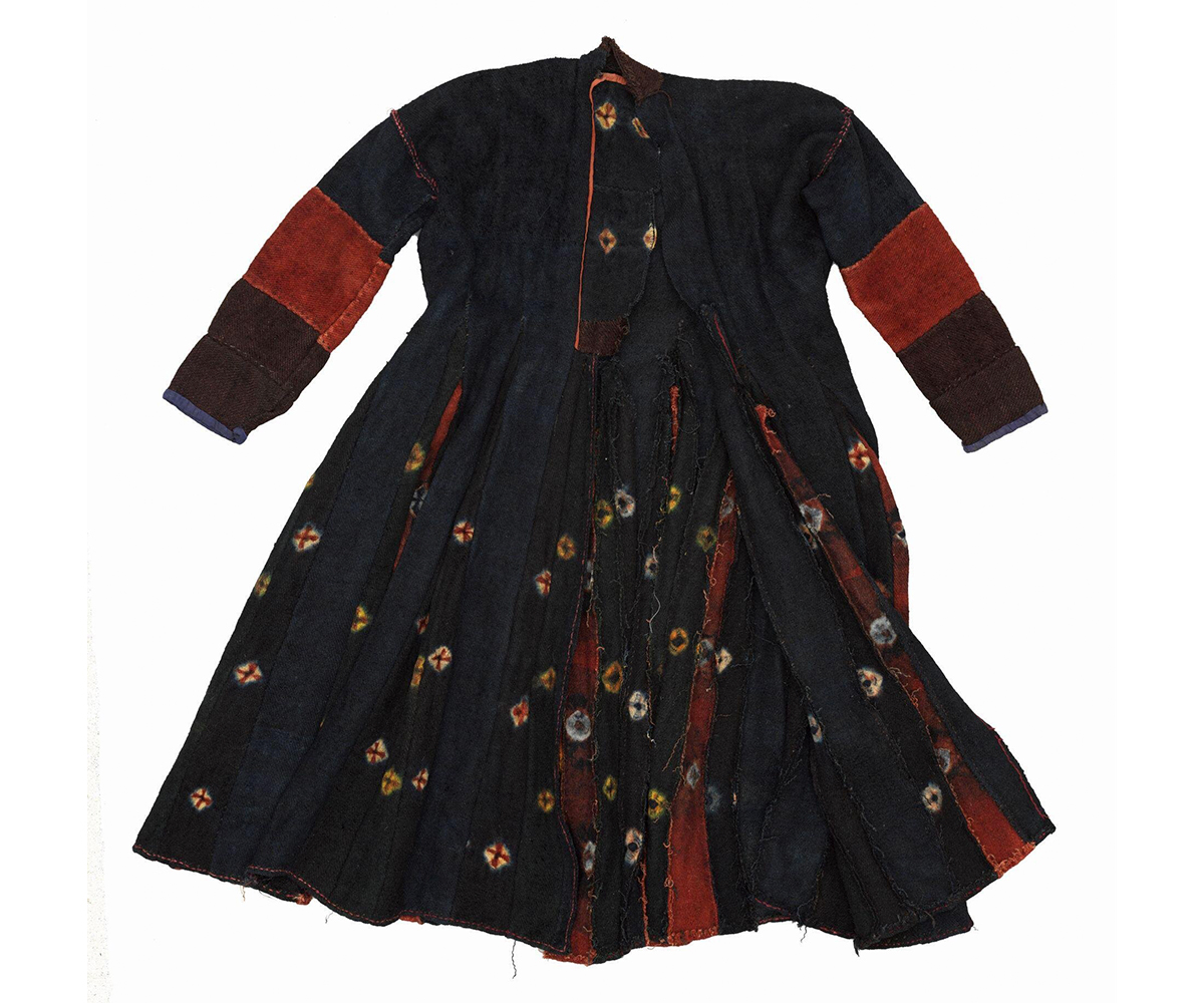 Coat, with narrow triangular panels of tie-dyed wool; Zanskar, Ladakh, India; 20th century; 115 x 142 cm; Victoria and Albert Museum, United Kingdom