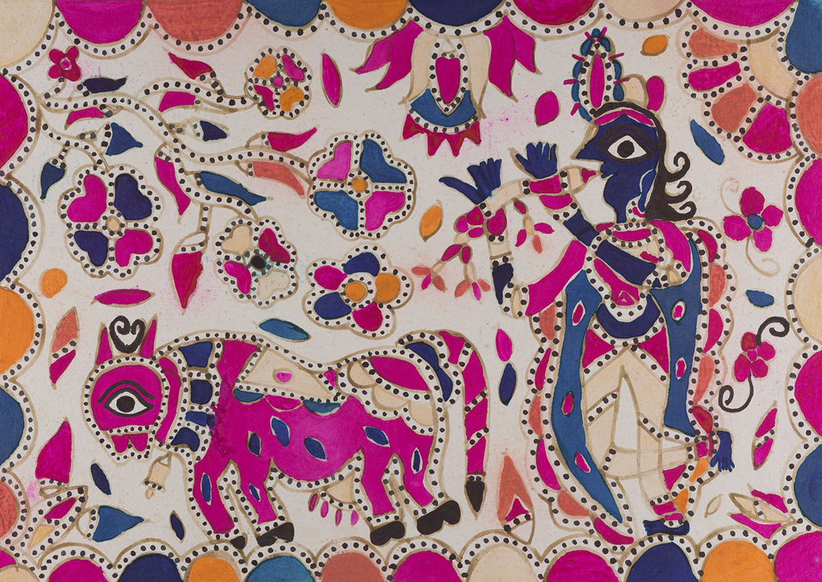 Krishna with Cow; Yashoda Devi; c. 1984; Natural pigments on handmade paper; 78 x 56 cm; Museum of Art & Photography (MAP), Bengaluru