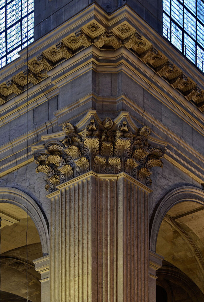 An architectural term used to denote a pillar that emerges at an angle in a building or a structure.