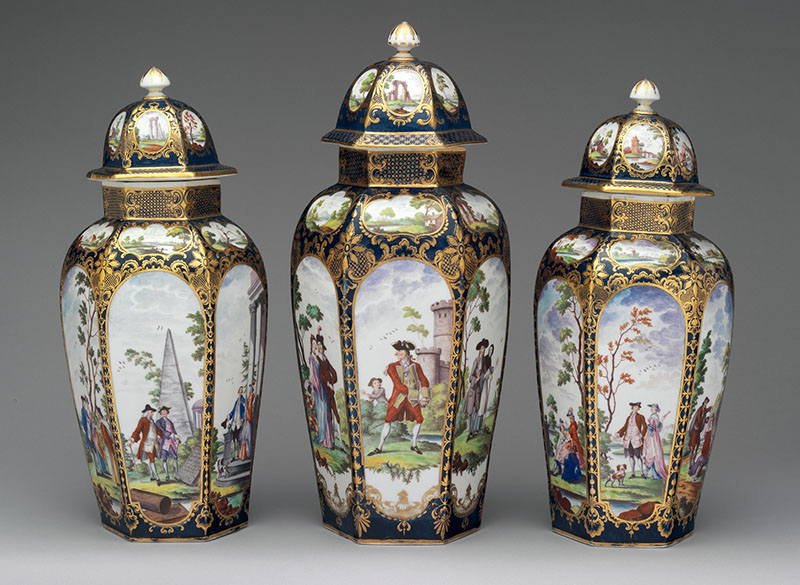 The European interpretation of Chinese and East Asian decorative arts, design, literature and culture, characterised by extreme decoration, stylised objects and asymmetry. It emerged during the mid to late seventeenth century. From the French chinoiserie, meaning “Chinese.”