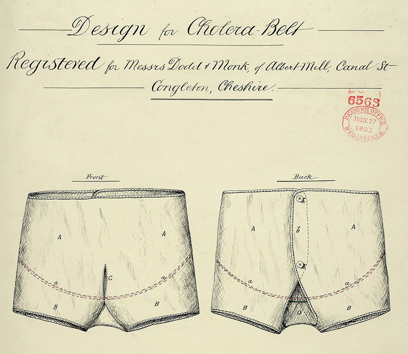 A belt or flat strip made of flannel or wool and tied around the stomach as a preventative measure against cholera and dysentery, as it was believed that a cold abdomen was the cause of these ailments. It was typically 6 feet long and 6 inches wide and was part of standard army uniform in India during the nineteenth and early twentieth centuries.