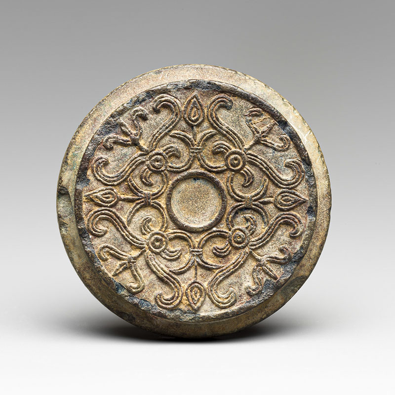 Stone sculptures that developed from ringstones, dated approximately to the first century BCE; although similar in shape, disc stones consist of a flat top and do not feature a central void. They are also typically carved in a simpler manner and decorated with plant vine motifs.