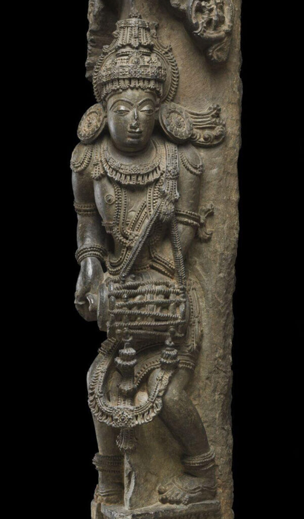 The personification of Vishnu's discus, the Sudarshan Chakra, as a male figure. It is an example of the Ayudhapurusha tradition…
