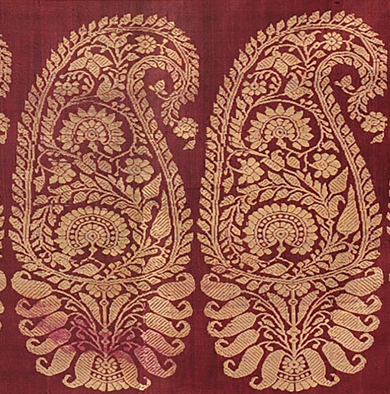 Baluchari sari (detail); Dubraj Das; Murshidabad, West Bengal, India; 19th century; 430 x 120 cm. Indian Museum, Kolkata, and Google Arts & Culture