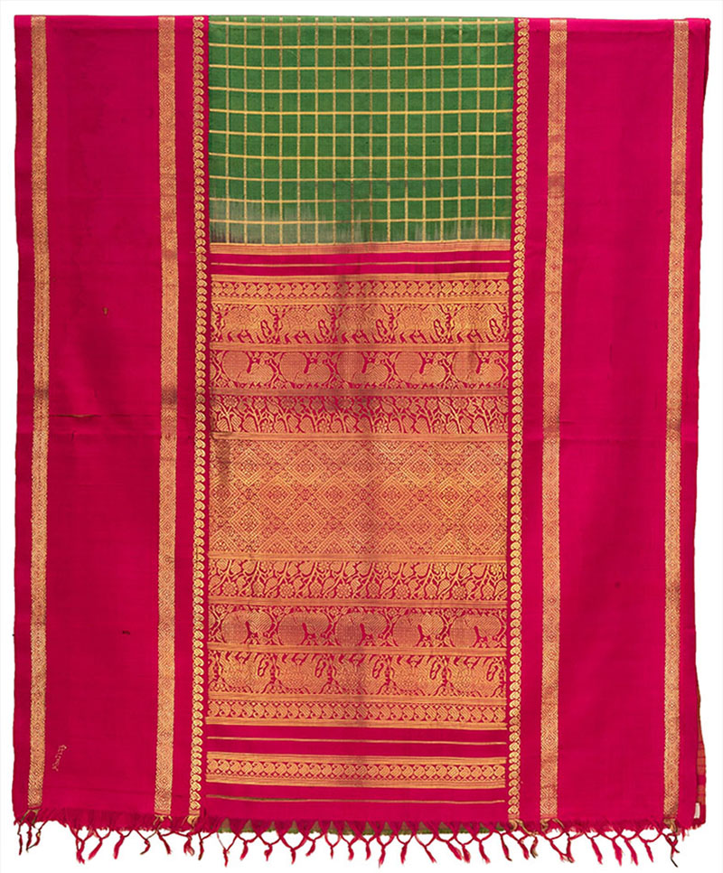 Commonly found in sari designs of Tamil Nadu, it is a pattern characterised by fine, evenly spaced checks woven into the body of the textile.