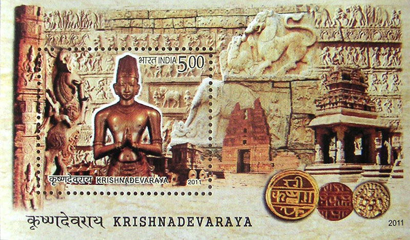 Krishnadevaraya (b. n.d.; d. 1529 CE) was one of the most celebrated rulers of the Vijayanagara empire, a kingdom that ruled the Deccan region of India between the fourteenth and mid-seventeenth centuries. He belonged to the Tuluva dynasty and reigned from 1509 to 1529. He expanded the empire’s political influence and its geographical frontiers, gaining victory over the Islamic Sultanates of the Deccan and the Gajapati dynasty of present-day Odisha. He was a patron of the arts, particularly literature, and was also a benefactor to several temples of the region. In addition, he also authored literary works, including the epic Telugu poem Amuktamalyada and a Sanskrit drama, titled Jambavati Kalyanam.