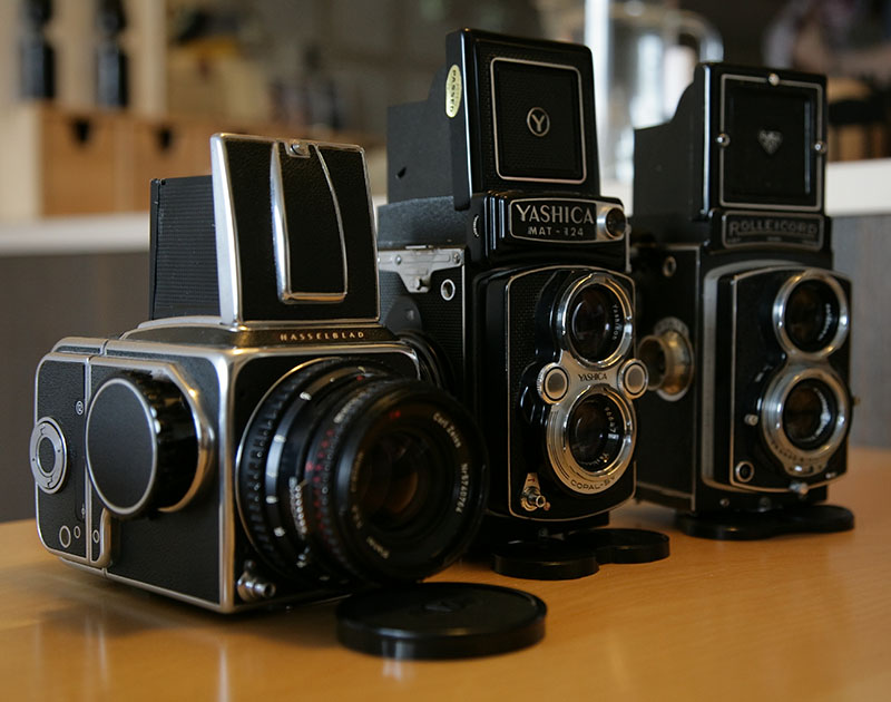Film cameras that produce images larger than 24 mm x 36 mm but smaller than 4 inches x 5 inches.