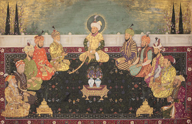 Persianate Muslim dynastic empire covering, at its largest, most of South Asia, founded in 1526 by the Central Asian Timurid prince Babur (r. 1526–30); with capitals shifting between Delhi, Agra, Fatehpur Sikri and Lahore. Succeeding the Delhi Sultanate the Mughals dominated for nearly 200 years through effective political and administrative policies, first established by Akbar (r. 1556–1605), combining conciliation and conquest. The term ‘Mughal’ (‘Mongol’, Persianised) was applied to the dynasty starting with Babur, though they identified as Timurids and called their empire Hindustan. Akbar actively promoted religious syncretism in the Hindu-majority empire; other rulers until Aurangzeb (r. 1658–1707) remained generally tolerant. The Mughal period was marked by a fruitful exchange between Persianate and Indic artistic and cultural traditions; the patronage of Mughal rulers — especially Akbar, Jahangir (r. 1605–1627) and Shah Jahan (r. 1627–1656) — fostered major developments in miniature painting, literature in Persian and Urdu, Hindustani classical music, and architecture, such as the Taj Mahal. The empire declined in the eighteenth century but remained a symbolic power until formally dissolved in 1858 by the British Raj after the Revolt of 1857.