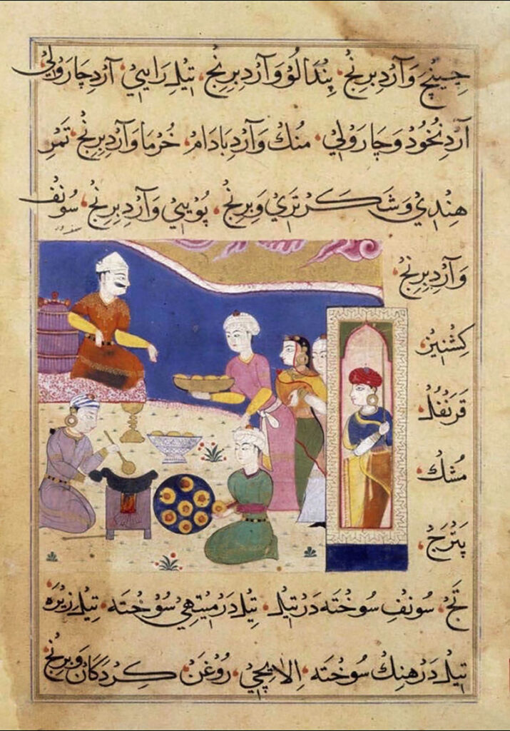 Nimatnama-i-Nasiruddin-Shahi (Book of Delicacies of Nasir-ud-Din Shah) was a cookbook written c.1500 in the Malwa Sultanate. The manuscript was written in Persian, in the Naskh script and illustrates the preparation of recipes through the Turkic style of Shirazi painting and the Chaurapanchasika style of pre-Mughal India. It is presently housed in the British Library, London.