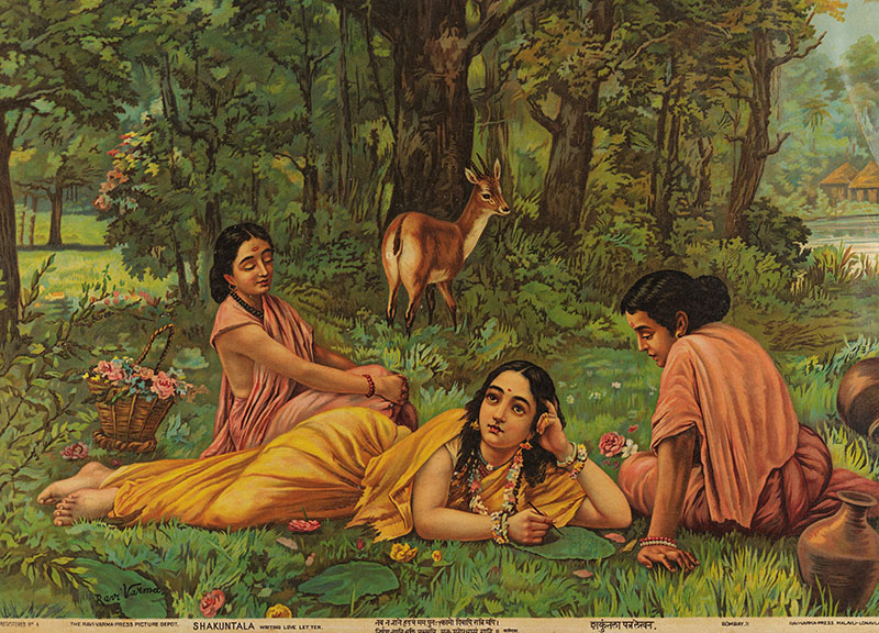 Shakuntala Patralekhana; Raja Ravi Varma and Ravi Varma Pres; Malavli, Lonavala, India; c. 1930; Chromolithograph; 50 x 70 cm. The Ganesh Shivaswamy Foundation, Bengaluru, and Google Arts & Cultrue