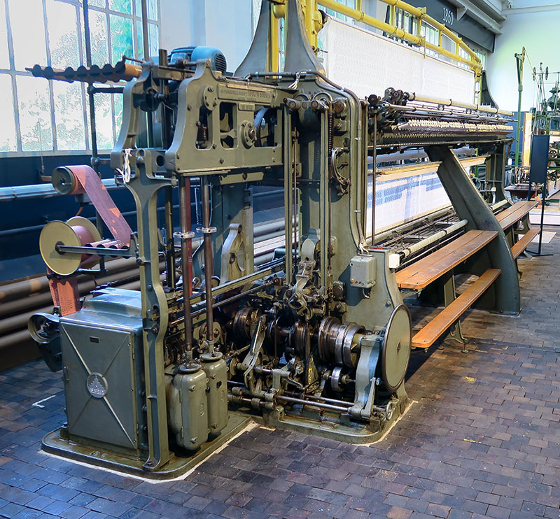 A multi-thread machine used to create machine embroidery and lace, invented in 1893 by Swiss inventor Isaak Grobli. The term also refers to embroidered textile made from the machine.