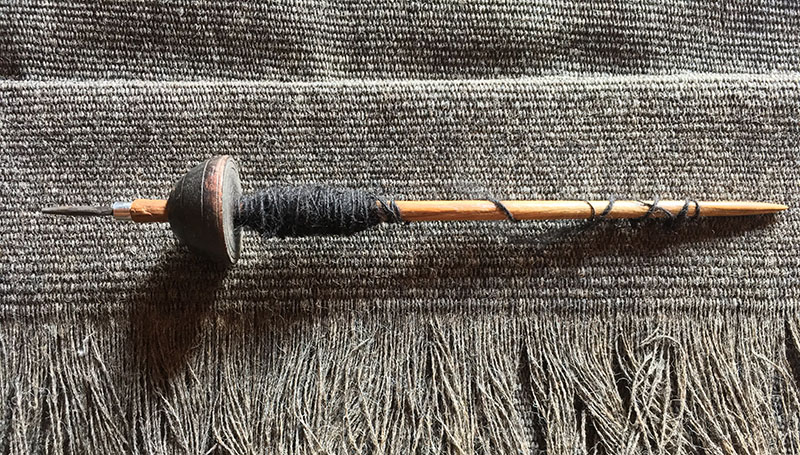 A traditional hand spindle used for spinning yarn from fibre in the Takli hand-spinning technique from Kutch, Gujarat. From the Hindi word takali, meaning “bobbin of cotton.”