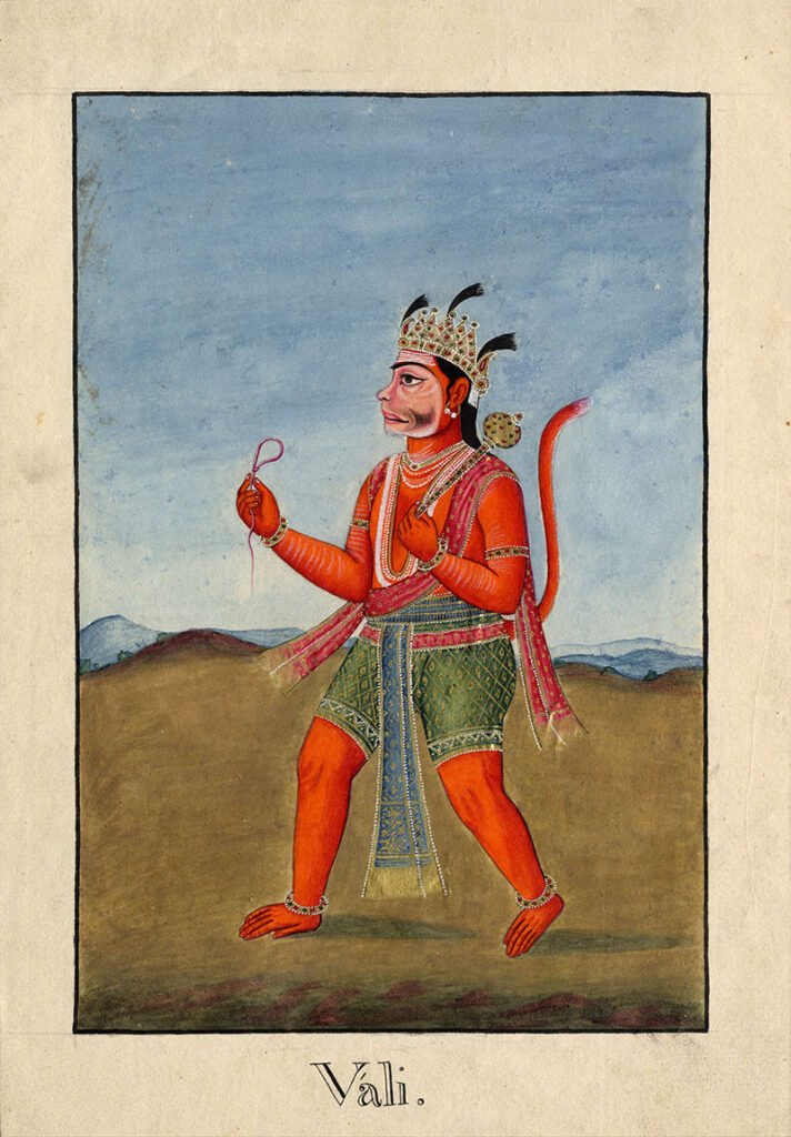 The king of Kishkindha and the elder brother of Sugriva in the Hindu epic Ramayana. He had a boon that allowed him to gain half of his opponent’s strength. He was killed by Rama.