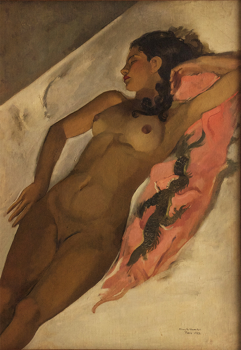 In spite of her European education and upbringing, she longed for the memories of her childhood in India and sought to trace her lineage in the Indian past. By 1932, she began to experiment with representations of the non-western brown body, as we can see in her painting, Nude (1933).