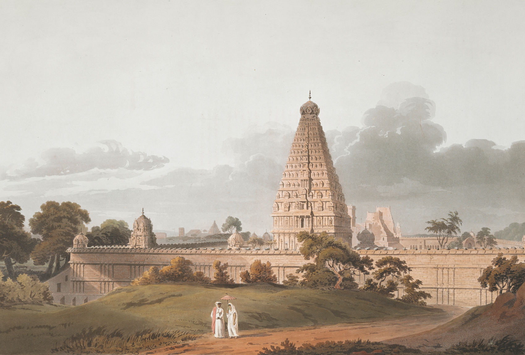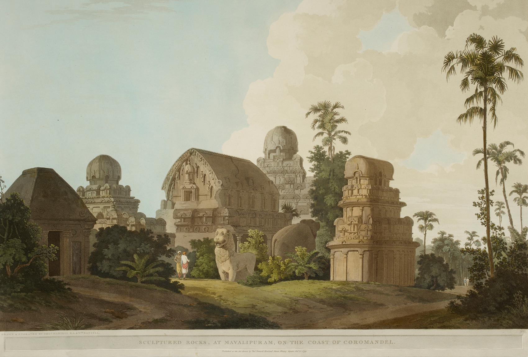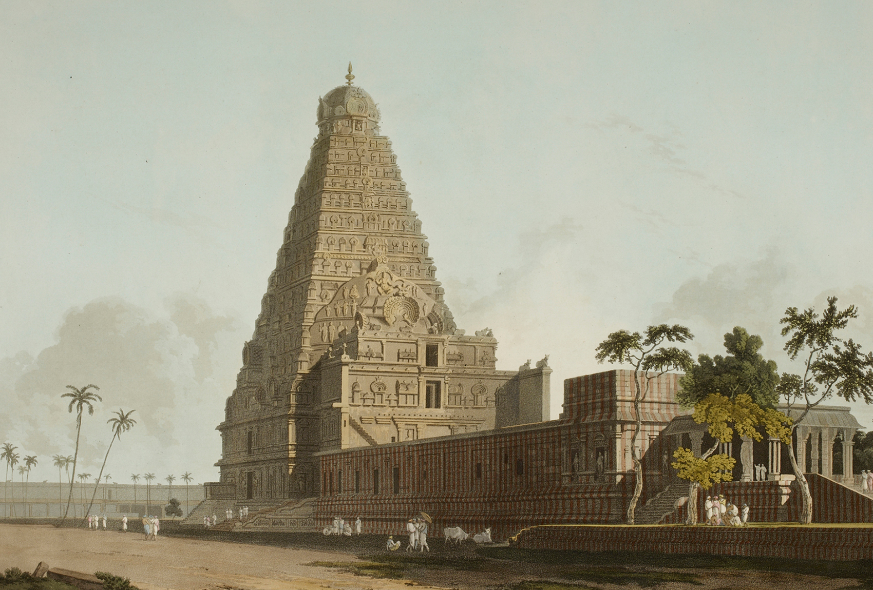 The Great Bull, an Hindoo Idol, at Tanjore (detail); Thomas Daniell; 1798; Coloured aquatint print; 54.6 x 74.7 cm. British Library P957